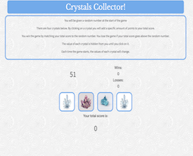 Collect the correct crystals to match the random number given to you. The value of each crystal is hidden from you until you click on it.