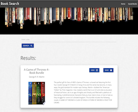 Search for books from the Google Books API. You can then save them to a database to view later.