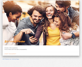 Friend Finder is a compatibility-based application. Complete a simple survey, when you submit your answers they will be compared with other "users'" surveys and you will be shown your best match.